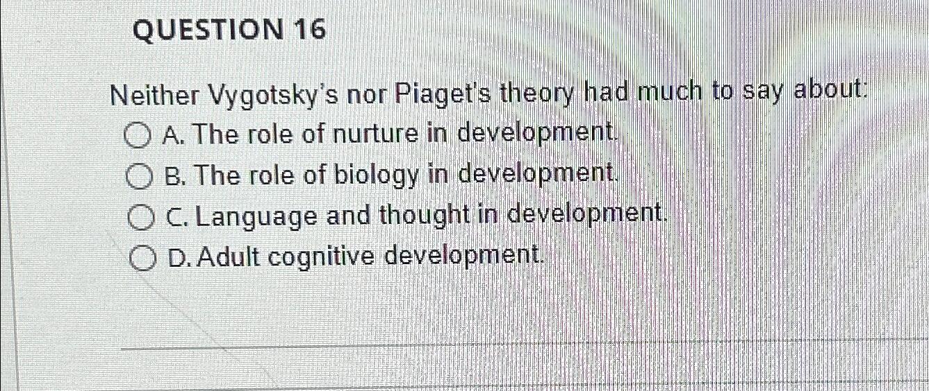 Solved QUESTION 16Neither Vygotsky s nor Piaget s theory had Very well made.