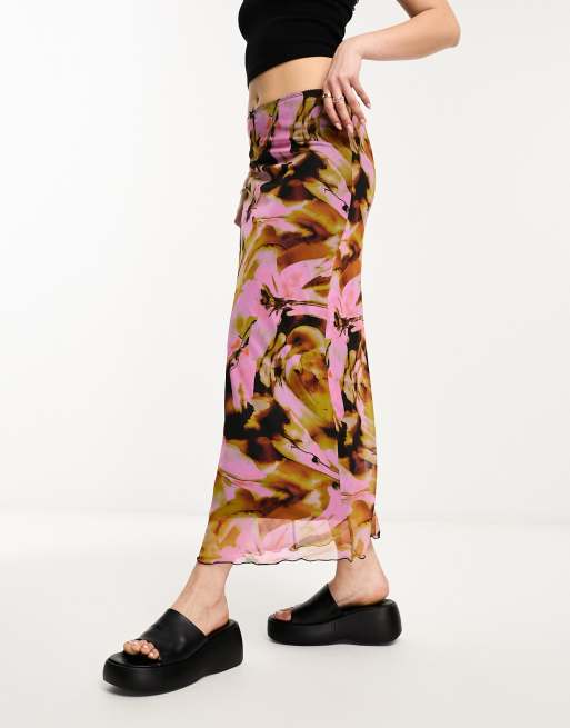 ASOS DESIGN mesh midi skirt in pink marble ASOS Very well made.